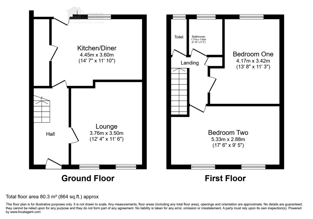 Upstairs, the first floor provides two generously sized rooms, both offering excellent proportions and flexibility for use as sleeping accommodation, guest space, or home working. The bathroom is well-arranged, with a clean and functional layout, while a separate WC adds further practicality for busy households.