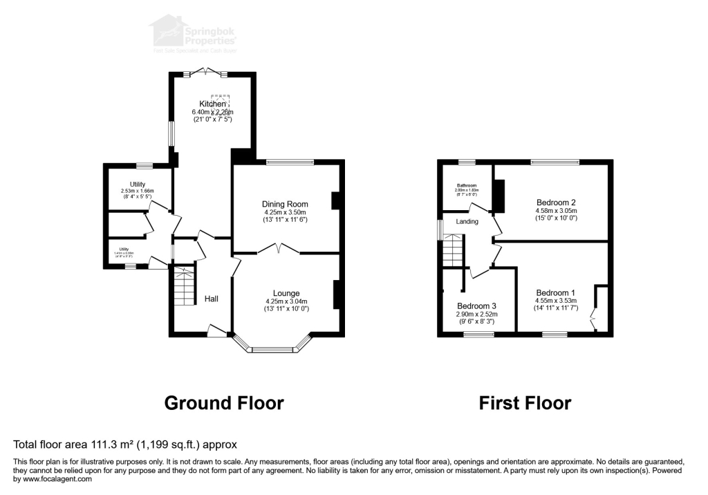Upstairs, the first floor provides three bedrooms, two of which are well-sized doubles, while the third works perfectly as a child's room, home office or nursery. The family bathroom is fitted with a modern white suite and benefits from natural ventilation, completing the accommodation with a practical, no-nonsense layout that suits everyday living.